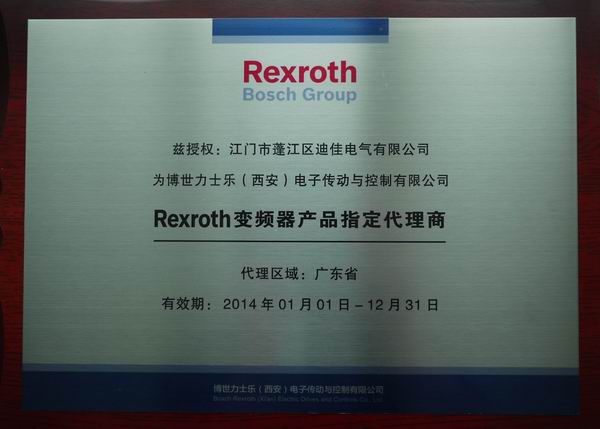 茲授權:江門市蓬江區迪佳電氣有限公司為博世力士樂(西安)電子傳動與控制優先公司Rexroth變頻器產品指定代理商
